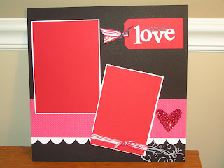 I thought...I can do this! And it is due tomorrow ( April 1st). So yesterday I went to it. If I don't scrap in chronological order.....it takes me forever to decide which pictures to use. I am so far behind, I didn't scrap my daughter's first Valentine's Day. So I pulled out those pictures and went to it.